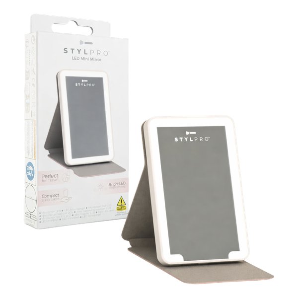 Varmista virheetön look Stylpro LED-minipeilillä, missä tahansa liikutkin! Kompakti ja ohut kannettava peili sopii ehostamiseen, meikin korjailuun ja hiusten stailaamiseen reissun päällä. LED-valo varmistaa voimakkaan ja tasaisen valaistuksen kaikissa ympäristöissä. Kevyt ja tyylikäs peili on suojattu naarmuuntumisen estävällä kuorella. Näppärä apuväline kaikenlaiseen kauneudenhoitoon kotona ja matkoilla.