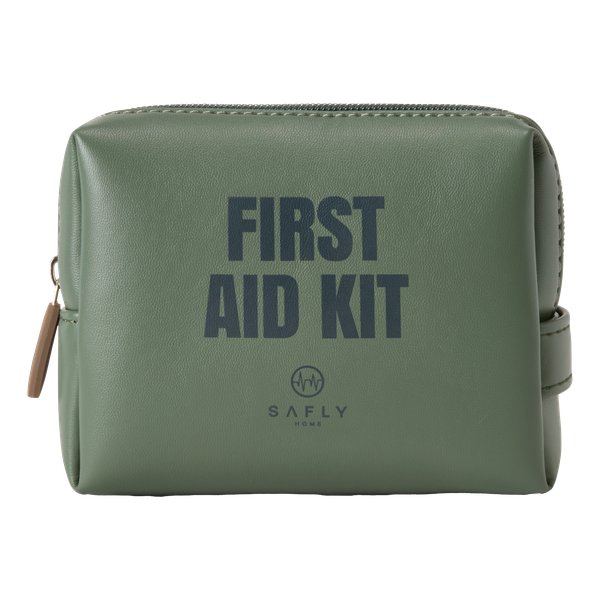 Safly First Aid Kit on kompakti ja tyylikäs ensiapupakkaus, joka sisältää valikoiman tuotteita pienten arjen vammojen hoitoon. Pehmeä ja joustava materiaali tekee laukusta helpon ottaa mukaan matkalle tai lastenrattaisiin. Turvallinen ratkaisu koko perheelle, jotta ensiapu on aina käden ulottuvilla tarvittaessa. Mitat: 14 × 11 cm.