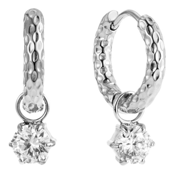 Näissä modernin eleganssin innoittamissa korvakoruissa on hieman särmikäs muotoilu ja rengas, jonka pehmeästi teksturoitu pinta heijastaa valoa kauniisti joka suunnasta. Sievä, pyöreäksi hiottu kuutiollinen zirkonia-riipus luo täydellisen tasapainon näyttävän rakenteen ja naisellisen kimalluksen välillä. Koru on valmistettu ruostumattomasta teräksestä, mikä tekee siitä kestävän ja kauniin kiiltävän. Vedenkestävä ja nikkelitön. Pituus 20 mm