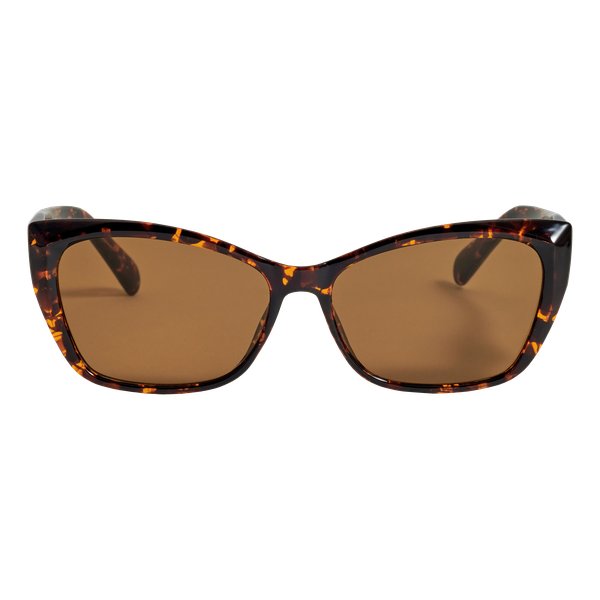 Naisten kilpikonnakuvioiset kissansilmälasit. Linjakkaat, veistokselliset kehykset, jotka näyttävät yhtä hyvältä niin arkena kuin lomallakin. UV400-suoja.
