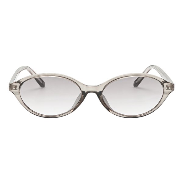 Pelkistetyt ovaalit aurinkolasit läpikuultavassa harmaassa värissä. Keveä ja ajaton malli. UV400-linssit antavat täyden suojan auringolta.