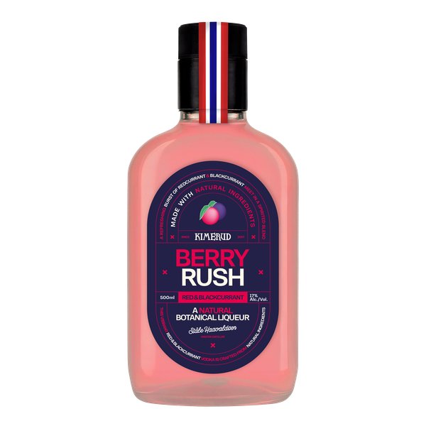 Kimerud Berry Rush valmistetaan luonnollisista ainesosista: pohjoismaisista musta- ja punaherukoista. Mustaherukoiden syvä täyteläisyys yhdistyy punaherukan hapokkuuteen muodostaen tasapainoisen harmonian makeuden, raikkauden ja marjaisuuden välillä. Tuloksena on tyylikäs, leikkisä ja vastustamattoman hyvänmakuinen likööri.