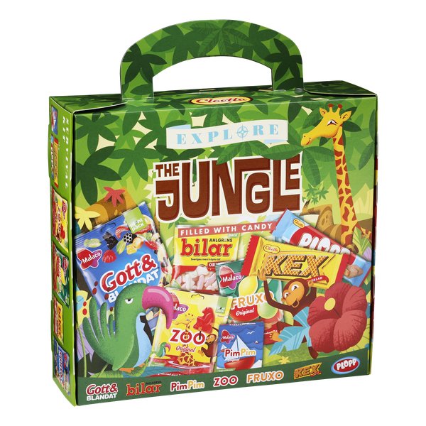 Cloetta The Jungle on leikkisä karkkipussi, joka on täynnä Cloettan tuotemerkkien klassisia suosikkeja. Karkkien lisäksi se sisältää myös paperihahmoja, joita voi askarrella ja käyttää leikissä mielikuvituksellisessa viidakkoympäristössä. Mukana olevat tuotteet ovat Gott & Blandat, Ahlgrens bilar, Kexchoklad, Plopp, Fruxo, Zoo ja PimPim. Cloetta The Jungle on sekä herkullinen että hauska!