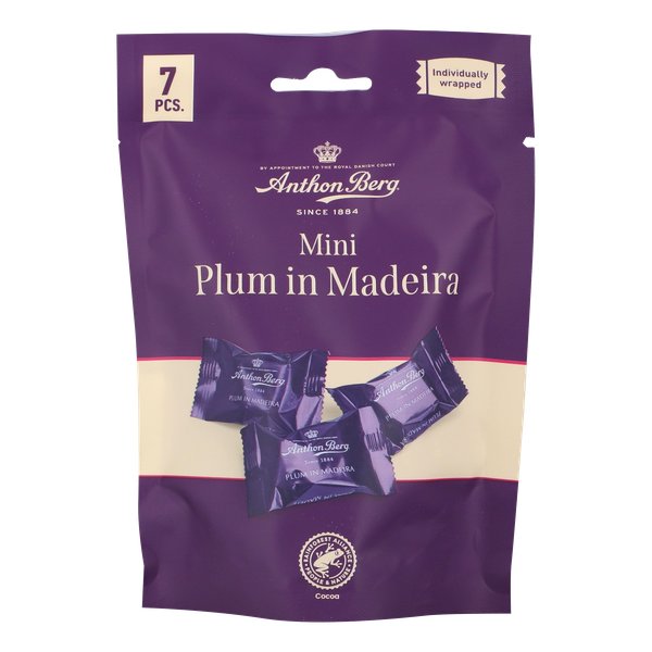 Anthon Bergin tummaa suklaata marsipaanilla ja madera-luumutäytteellä. Jokainen suklaapala on yksittäispakattu.
