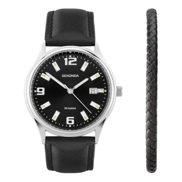 Kellossa on pyöreä, metallinharmaaksi pinnoitettu kuori, musta kellotaulu ja kontrastivärinen kehys. Musta nahkaranneke on vaihdettava. Kello näyttää 24 tunnin lisäksi päivän/päivämäärän ja on vedenkestävä aina 50 metriin asti.