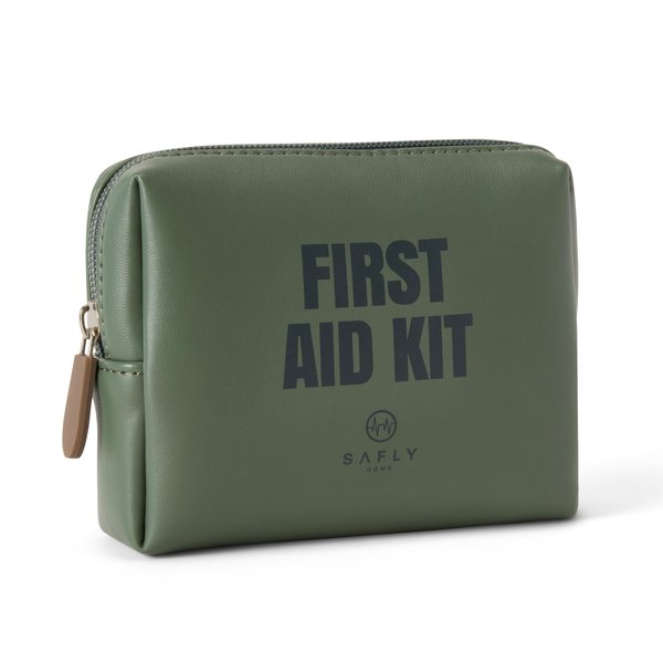Safly First Aid Kit er et kompakt og stilrent førstehjælpssæt, der indeholder et udvalg af produkter til håndtering af mindre skader i hverdagen. Det bløde og fleksible materiale gør tasken nem at have med på rejser eller i barnevognen. En tryg løsning for hele familien, så du altid har førstehjælp lige ved hånden, når det er nødvendigt. Mål: 14 × 11 cm.