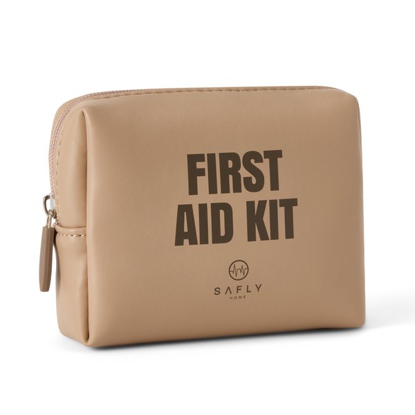 Safly First Aid Kit er et kompakt og stilrent førstehjælpssæt, der indeholder et udvalg af produkter til håndtering af mindre skader i hverdagen. Det bløde og fleksible materiale gør tasken nem at have med på rejser eller i barnevognen. En tryg løsning for hele familien, så du altid har førstehjælp lige ved hånden, når det er nødvendigt. Mål: 14 × 11 cm.