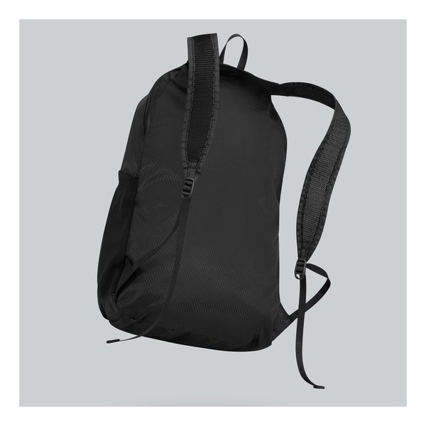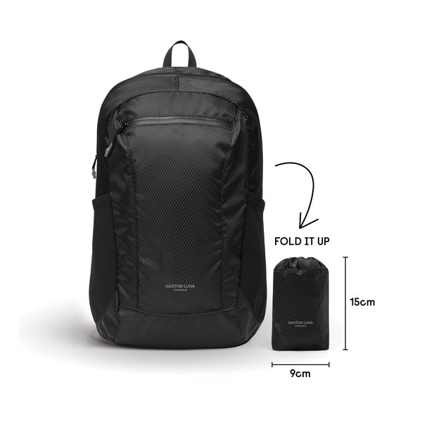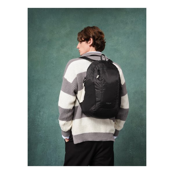 En miljövänlig ryggsäck av återvunnen polyester som kan vikas ihop för att vara lätt att packa. Den har mesh-axelremmar och ett ytterfack med blixtlås. Väskans volym: 21 l. Mått: 44 x 28 x 17 cm (ovikt), 15 x 9 x 5 cm (hopvikt).