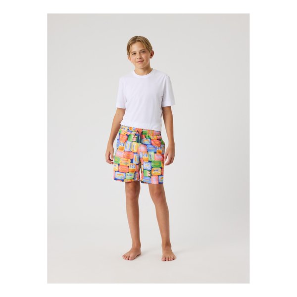 Perfekta badshorts för barn med en bekväm passform och justerbara dragsnören. Tillverkade av återvunnen polyester med meshfoder för extra komfort.