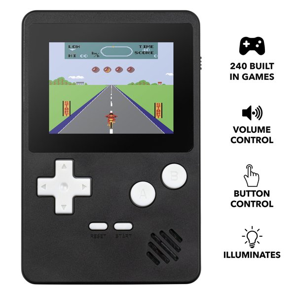 Återupplev gamla minnen med TUI:s retro-spelkonsol (3 x AAA-batterier ingår). Den här charmiga, handhållna videospelkonsolen är av gammal klassisk modell. Den har en livfull 2,5-tumsskärm och hela 222 förinstallerade retrospel.